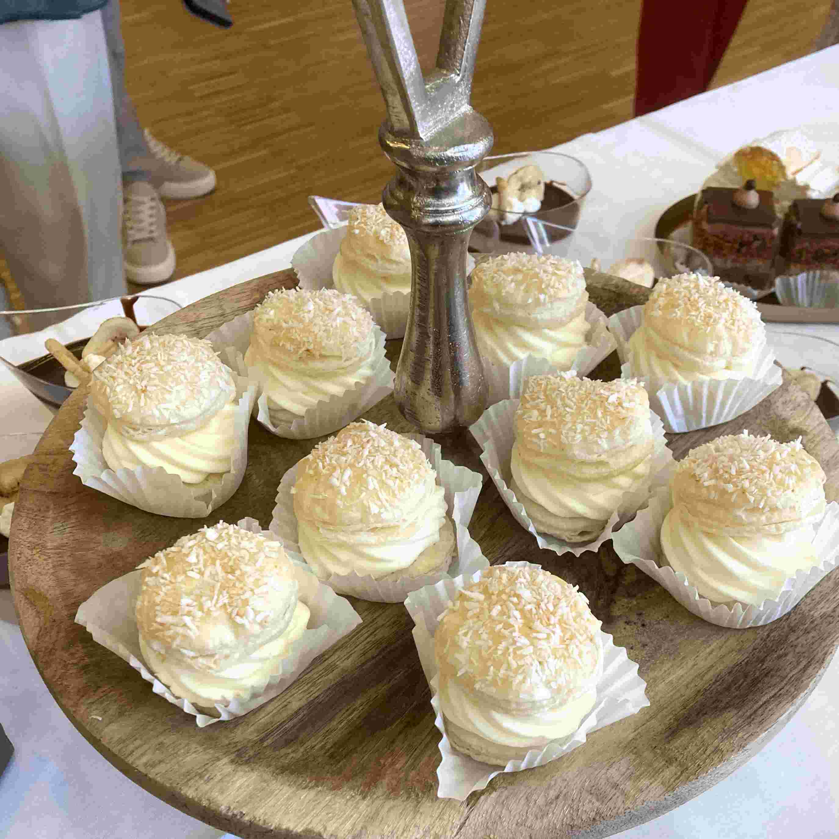Unsere beliebten Cremeschnitten im Miniformat – zwei rund ausgestochene Blätterteigscheibchen gefüllt mit luftig leichter Vanilleoberscreme